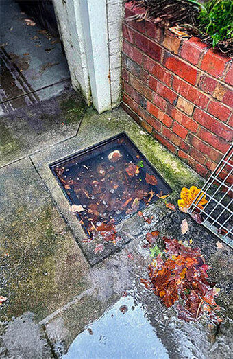 Emergency attendance for properties experiencing water pooling in yards, driveways, or near foundations due to blocked surface drains or overwhelmed grates.
